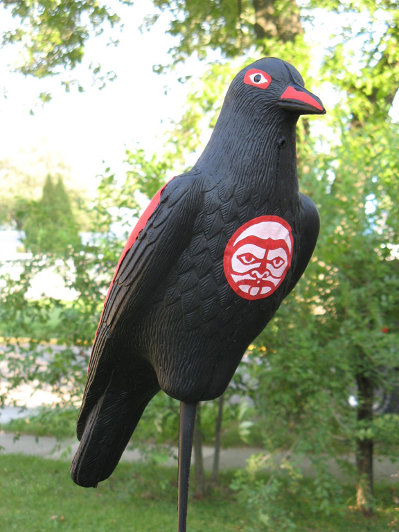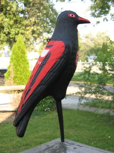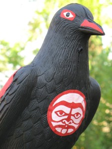 I was in the library a few weeks ago and I saw this crazy bird dressed like John Belushi as a Bee sitting on top of one of the short bookcases in the lobby area. There was a sign that said “Adopt a Raven” and “In the Spirit of Poe”. Curiosity won, I asked a librarian “What’s the deal with the bird?”. A tenner later I was strolling out with my very own blank raven, OK, my very own blank crow decoy.