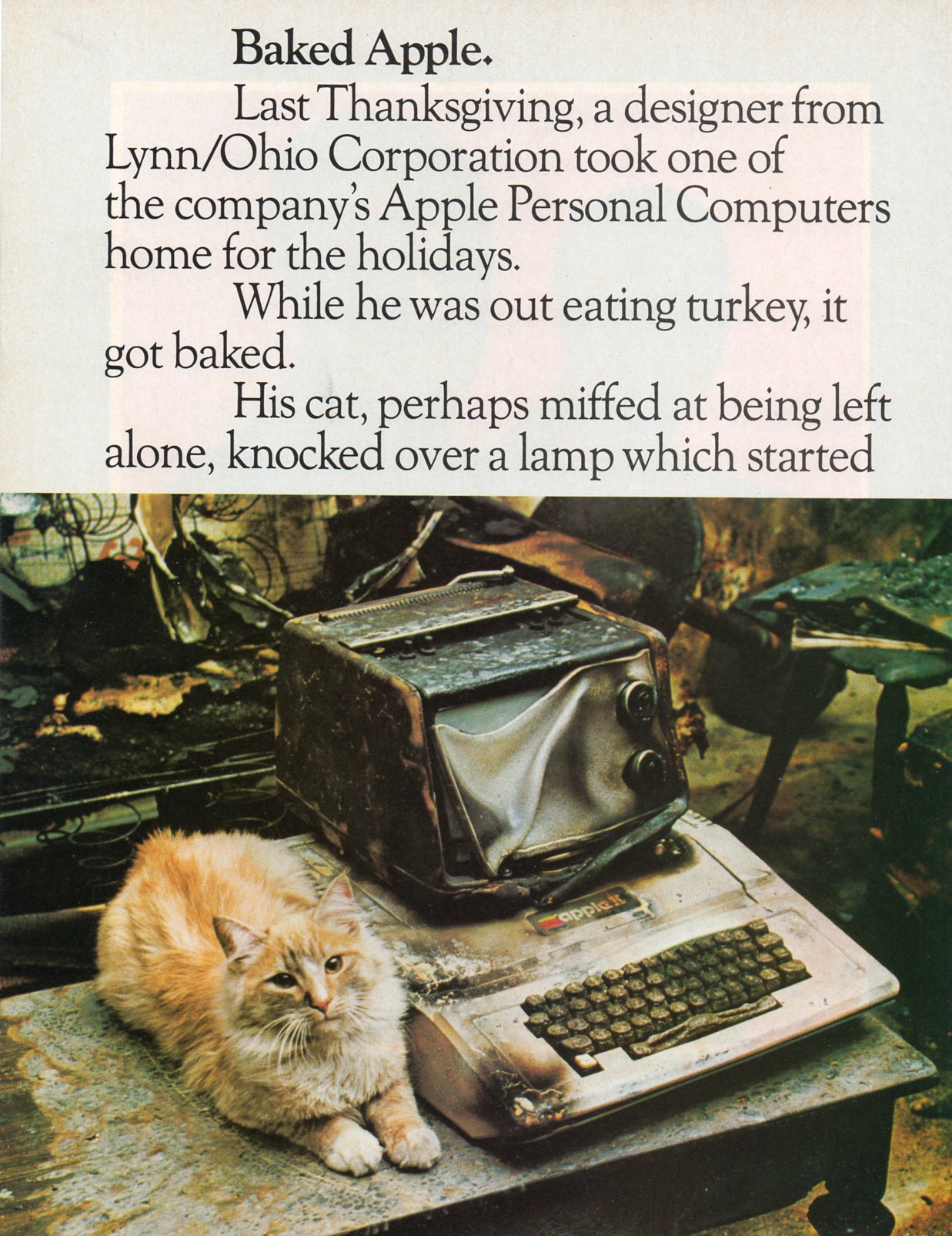 A personal favorite, unfortunately I only have one half of this two page fire inspired spread. If memory serves; despite the melty condition of the computer, Apple was able to recover the contents of the hard drive. Again from Omni.